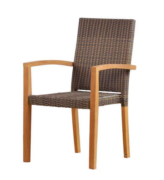 Teak Stapelsessel massiv wetterfest Polyrattan Geflecht hochwertig
