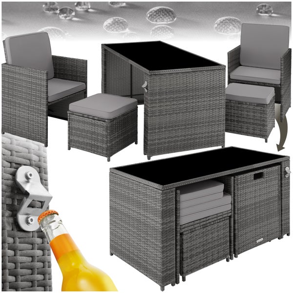 tectake Rattan Sitzgruppe - UV-beständiges Polyrattan, Stabilem Stahlgestell - Grau