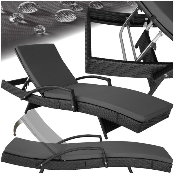 tectake Sonnenliege Aluminium Rattan verstellbare Rückenlehne wetterfest pflegeleicht schwarz 190x71x34-74,5 cm