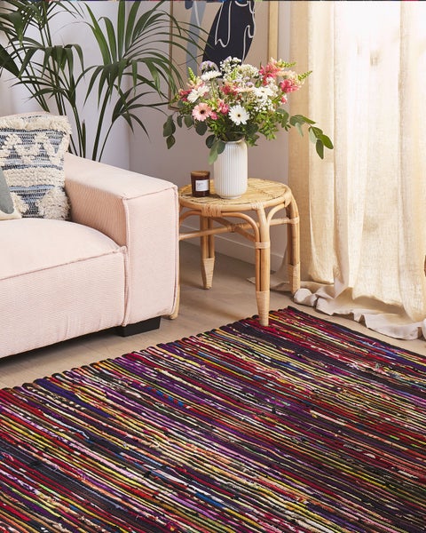 Handgefertigter, rechteckiger Teppich mit dunklem Farbverlauf. Setzen Sie auf einen farbenfrohen Teppich, der mit seiner handgefertigten Schönheit und seinem abstrakten Muster jeden Ihrer Wohnräume belebt. Sein wunderschönes Motiv besteht aus hochwertigen Baumwoll- und Polyestergarnen, die in dunklen Farbtönen gehalten sind und einen fließenden Farbverlauf kreieren. Dank des reichen Farbspiels lässt sich dieser Kurzflor ausgezeichnet in jeden Einrichtungsstil integrieren und bietet somit besonders vielseitige Nutzungsmöglichkeiten. Seine hochwertigen Materialien und seine weiche Oberflächenstruktur sorgen dafür, dass sich der Teppich angenehm unter den Füßen anfühlt und dabei auch viele Jahre hält. Zudem ist er einer Fußbodenheizung gewachsen. Details: Typ Kurzflor. Farbe: Bunt. Material: Stoff. Material: Polyester. Zusätzliches Material: Baumwolle. Zusammenstellung: 70% Polyester. Form: Rechteckig. Rutschfeste Unterseite: Nein. Muster: Abstraktes Muster. Herstellungsmethode: Handgewebt. Abmessungen: Florhöhe: 1.3 cm. Breite: 160 cm. Länge: 230 cm. Gewicht: 6 kg. .Sie kaufen: 1 x Teppich. Produktvorteile: Geeignet für Fussbodenheizung, Erzeugt Wohlfühlcharakter in jedem Raum, Ansprechende Farbkombination, Handgefertigte Präzision, Besonders pflegeleicht und langlebig. Montage: Benötigt keine Montage. Zusatzinformationen: Der Artikel könnte Haare verlieren. Dies ist ein normaler Vorgang und stellt keinen Qualitätsmangel des Produkts dar. Da der Teppich handgewebt ist, können kleine Farb-, Muster-, bzw. Grössendifferenzen auftreten. Diese Unterschiede stellen jedoch keinen Produktfehler dar. Der Artikel benötigt einige Zeit, bis er seinen ursprünglichen Zustand erreicht hat – daher sollte er so schnell wie möglich ausgerollt werden und innerhalb von 72 Stunden seine vollständige Größe wieder erreichen. Für einen optimalen Effekt sollte man die Teppichkanten mit schweren Gegenständen fixieren. Pflegeanleitung: 1.Staubsaugen einmal pro Woche ist ausreichend, um den Teppich sauber und gepflegt zu halten. Wir empfehlen dazu einen Staubsauger mit flacher, weicher Bürste und die Einstellung von mittlerer Saugleistung. Saugen Sie Ihren Teppich immer in Florrichtung ab. 2.Soweit das Format dies zulässt, drehen Sie den Teppich alle sechs Monate um 180 Grad. So erhalten sie eine gleichmäßige Abnutzung und vermeiden Sie Verbleichen der Farben durch Sonneneinstrahlung. 3.Entfernen Sie Flecken umgehend. Flüssigkeiten werden mit einem saugfähigen, nicht färbenden Baumwolltuch aufgenommen. Arbeiten Sie vom Rand nach innen und verreiben Sie den Fleck nicht. 4.Bei festem Schmutz können Sie die losen Schmutzteile vorsichtig abkratzen. Danach wird die Stelle mit klarem, lauwarmem Wasser abgetupft. Benutzen Sie dazu ein sauberes nicht färbendes Baumwolltuch sowie einen Fleckentferner speziell für Teppiche. Bitte befeuchten Sie den Teppich dabei nicht zu stark. Falls der Fleck hartnäckig sein sollte, wenden Sie sich bitte an ein Fachgeschäft für Teppichreinigungen. 5.Es wird empfohlen den ausgepackten Teppich mindestens ein paar Stunden (am besten ein oder zwei Tage) zu lüften. Dies ermöglicht den natürlichen Geruch des Materials, aus dem das Produkt gefertigt wurde, zu mildern.