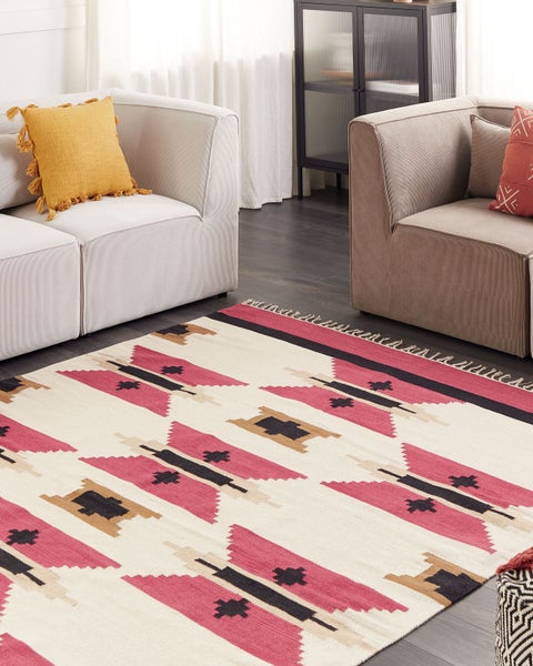 Handgewebter, rechteckiger Baumwollteppich mit farbenfrohem Muster und hellen Fransen. Sein hochwertiges Material und seine prächtigen Farben verleihen diesem Kelim einen unvergleichlichen Look, der von orientalischer Kunstfertigkeit und Tradition nur so geprägt ist. Er ist aus weichen Baumwollfasern mit Liebe und Fachwissen gefertigt. Während des Herstellungsverfahrens entsteht ein einzigartiges Motiv, das auch auf der Unterseite des Teppichs zu sehen ist und bei keinem Modell gleich aussieht. Nutzen Sie diesen Vorteil aus und verwenden Sie ihn auf einer Ihrer Lieblingsseiten. Zudem besitzt der Kurzhaarteppich dekorative Fransen an den Seiten, die ihm einen gemütlichen Touch verleihen. Er ist waschmaschinentauglich, so können Sie ihn schnell reinigen und seine lang anhaltende Schönheit genießen. Dank seiner Strapazierfähigkeit und Pflegeleichtigkeit eignet er sich sowohl für leicht als auch stark frequentierte Wohnbereiche. Details: Typ Kelim. Stil: Klassisch. Farbe: Bunt. Material: Stoff. Material: Baumwolle. Zusammenstellung: 100% Baumwolle. Form: Rechteckig. Rutschfeste Unterseite: Nein. Muster: Geometrisches Muster. Geeignet für Fußbodenheizung: Nein. Herstellungsmethode: Handgewebt. Abmessungen: Florhöhe: 0.5 cm. Breite: 200 cm. Länge: 300 cm. Gewicht: 5 kg. .Sie kaufen: 1 x Teppich. Produktvorteile: Handgefertigt mit viel Liebe zum Detail, Beidseitiges Muster, Wunderbar geeignet für Schlaf- und Wohnbereich, Erzeugt Wohlfühlcharakter in jedem Raum, Hohe Qualität, In der Waschmaschine als Ganzes waschbar. Montage: Benötigt keine Montage. Zusatzinformationen: Der Artikel könnte Haare verlieren. Dies ist ein normaler Vorgang und stellt keinen Qualitätsmangel des Produkts dar. Da der Teppich handgewebt ist, können kleine Farb-, Muster-, bzw. Grössendifferenzen auftreten. Diese Unterschiede stellen jedoch keinen Produktfehler dar. Der Artikel benötigt einige Zeit, bis er seinen ursprünglichen Zustand erreicht hat – daher sollte er so schnell wie möglich ausgerollt werden und innerhalb von 72 Stunden seine vollständige Größe wieder erreichen. Für einen optimalen Effekt sollte man die Teppichkanten mit schweren Gegenständen fixieren. Pflegeanleitung: Baumwolle: 1.Von Hand oder mit einem Feinwäsche-Programm bei max. 30°C waschen, wenn auf dem Etikett keine weiteren Hinweise des Herstellers gegeben sind. 2.Wenn auf dem Etikett nicht anders angegeben, bitte nicht im Trockner trocknen und auch nicht bügeln.