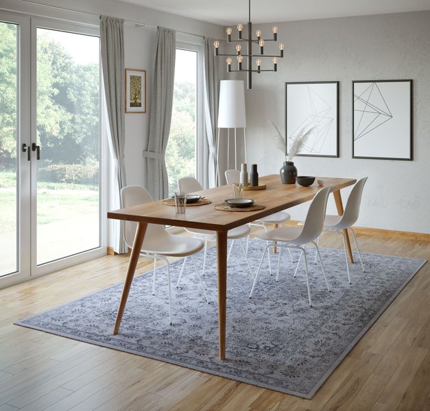 Die fein abgestimmte Mehrfarbigkeit verleiht dem Teppich einen neuen und modernen Look und lässt ihn zu Vintage- und Boho-Stilen ebenso gut passen wie zu modernen Einrichtungen. Das ungewöhnliche Design wird durch ein farbenfrohes Muster unterstrichen, das an verblichene Stoffe erinnert. Auch das gewebte Polyestergarn des Teppichs fühlt sich fast wie Stoff an: weich und dennoch äußerst strapazierfähig. Das Material ist daher auch allergikerfreundlich und für Staubsaugerroboter geeignet.