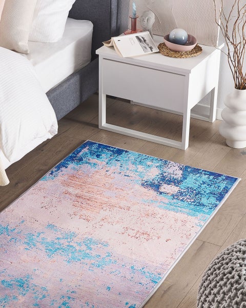Traumhaft schöner, rechteckiger Teppich mit abstraktem Muster. Die verschiedenen Blautöne erzeugen einen Wohlfühlcharakter in jedem Raum und erinnern dabei an Wellen, die am sandigem Strand einer Insel auslaufen. Das Zusammenspiel aus hochwertiger Verarbeitung und pflegeleichtem Polyester-Filz macht diesen Teppich äußerst strapazierfähig und leicht zu reinigen. Seine rutschfeste Unterseite schont den Fußboden. Details: Typ Kurzflor. Farbe: Blau. Farbton: Hellblau. Material: Stoff. Material: Polyester. Rückseitenmaterial: Polyester. Zusammenstellung: 100% Polyester. Form: Rechteckig. Rutschfeste Unterseite: Ja. Stoffgewicht: 500 g/m2. Muster: Abstraktes Muster. Herstellungsmethode: Maschinengewebt. Abmessungen: Florhöhe: 0.5 cm. Breite: 80 cm. Länge: 150 cm. Gewicht: 1 kg. .Sie kaufen: 1 x Teppich. Produktvorteile: Besonders sicher dank rutschfester Unterseite, Herrlich weich, Ein einzigartiger Hingucker, Hochwertiges Material, Besonders pflegeleicht und langlebig. Montage: Benötigt keine Montage. Zusatzinformationen: Der Artikel könnte Haare verlieren. Dies ist ein normaler Vorgang und stellt keinen Qualitätsmangel des Produkts dar. Pflegeanleitung: 1.Staubsaugen einmal pro Woche ist ausreichend, um den Teppich sauber und gepflegt zu halten. Wir empfehlen dazu einen Staubsauger mit flacher, weicher Bürste und die Einstellung von mittlerer Saugleistung. Saugen Sie Ihren Teppich immer in Florrichtung ab. 2.Soweit das Format dies zulässt, drehen Sie den Teppich alle sechs Monate um 180 Grad. So erhalten sie eine gleichmäßige Abnutzung und vermeiden Sie Verbleichen der Farben durch Sonneneinstrahlung. 3.Entfernen Sie Flecken umgehend. Flüssigkeiten werden mit einem saugfähigen, nicht färbenden Baumwolltuch aufgenommen. Arbeiten Sie vom Rand nach innen und verreiben Sie den Fleck nicht. 4.Bei festem Schmutz können Sie die losen Schmutzteile vorsichtig abkratzen. Danach wird die Stelle mit klarem, lauwarmem Wasser abgetupft. Benutzen Sie dazu ein sauberes nicht färbendes Baumwolltuch sowie einen Fleckentferner speziell für Teppiche. Bitte befeuchten Sie den Teppich dabei nicht zu stark. Falls der Fleck hartnäckig sein sollte, wenden Sie sich bitte an ein Fachgeschäft für Teppichreinigungen. 5.Es wird empfohlen den ausgepackten Teppich mindestens ein paar Stunden (am besten ein oder zwei Tage) zu lüften. Dies ermöglicht den natürlichen Geruch des Materials, aus dem das Produkt gefertigt wurde, zu mildern.