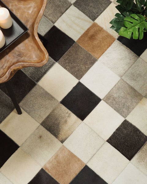 Echtlederteppich in Hellbeige bis Dunkelbraun. Der Echtlederteppich ist aus feinstem Rindsfell, in hellbeige bis dunkelbraun zusammengesetzt. Die vielen kleinen Fellquadrate harmonieren in wunderschönen Farbtönen mit fast jedem Boden, ob hell oder dunkel. Details: Typ Patchwork. Farbe: Braun. Farbton: Hellbraun. Material: Echtleder. Material: Kuhfell. Rückseitenmaterial: Filz. Zusammenstellung: 100% Echtleder. Form: Rechteckig. Rutschfeste Unterseite: Nein. Stoffgewicht: 2000 g/m2. Muster: Patchwork. Herstellungsmethode: Handgemacht. Abmessungen: Florhöhe: 0.5 cm. Breite: 200 cm. Länge: 300 cm. Gewicht: 20 kg. .Sie kaufen: 1 x Teppich. Produktvorteile: Der Filzrücken sorgt für optimalen Komfort und Haltbarkeit, Handgefertigt mit viel Liebe zum Detail, Geeignet für Fussbodenheizung, Herrlich weich, Ein einzigartiger Hingucker, Hochwertiges Material, Besonders pflegeleicht und langlebig. Montage: Benötigt keine Montage. Zusatzinformationen: Der Artikel könnte Haare verlieren. Dies ist ein normaler Vorgang und stellt keinen Qualitätsmangel des Produkts dar. Da der Teppich handgewebt ist, können kleine Farb-, Muster-, bzw. Grössendifferenzen auftreten. Diese Unterschiede stellen jedoch keinen Produktfehler dar. Um die Qualität und Langlebigkeit des Materials zu erhalten, sollten Sie den Teppich nicht in stark beanspruchten Bereichen platzieren. Leder ist ein Naturprodukt. Es kann zu einer Faltenbildung kommen, die durch einen natürlichen Vorgang entsteht. Leder kann sich durch Nutzung ausdehnen und bildet sich nicht komplett zurück in den ursprünglichen Zustand. Farb- und Strukturunterschiede, Narben, Falten und sonstige Naturmerkmale sind Echtheitsbeweise und keine zur Reklamation berechtigende Fehler. Pflegeanleitung: 1.Den Teppich draußen, an der frischen Luft nur leicht mit der Hand auszuklopfen. Legen Sie ihn mit der Oberseite auf ein Baumwolltuch, um ihn dann mit flacher Hand auszuklopfen. Das Ausklopfen mit einem Teppichklopfer ist nicht zu empfehlen, da so das Fell beschädigt werden kann. 2.Regelmäßig mit einer weichen Bürste ausbürsten. Die Bürste sollte speziell für Polstermöbel und Teppiche geeignet sein. 3.Das Absaugen mit einem Staubsauger sollten Sie, wenn möglich, vermeiden, da kleine Härchen ausgerissen werden können. 4.Generell nicht zu empfehlen ist die Verwendung von herkömmlichen Reinigungs- und Lösungsmitteln. Falls der Fleck hartnäckig sein sollte, wenden Sie sich bitte an ein Fachgeschäft für Teppichreinigungen. 5.Wenn der Teppich nass wird, lassen Sie ihn an einem nicht zu warmen Ort trocknen. Das Trocknen in Nähe von Wärmequellen kann den Teppich beschädigen. 6.Soweit das Format dies zulässt, drehen Sie den Teppich alle sechs Monate um 180 Grad. So erhalten sie eine gleichmäßige Abnutzung und vermeiden Sie Verbleichen der Farben durch Sonneneinstrahlung. 7.Vermeiden Sie den übermäßigen Gebrauch. Wir empfehlen den Teppich nicht im meistgenutzten Bereich der Wohnung zu legen, um die Lederstruktur nicht zu beschädigen. 8.Es wird empfohlen den ausgepackten Teppich mindestens ein paar Stunden (am besten ein oder zwei Tage) zu lüften. Dies ermöglicht den natürlichen Geruch des Materials, aus dem das Produkt gefertigt wurde, zu mildern.
