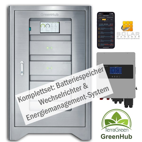 TerraGreen - GreenHub Premium-Set: Leistungsstarker 12,5 kWh Batteriespeicher – modular erweiterbar bis 40kWh, Energiemanagement-System & 14 kWh Wechselrichter. Für Photovolaikanlagen. – Angebot für Privatkunden