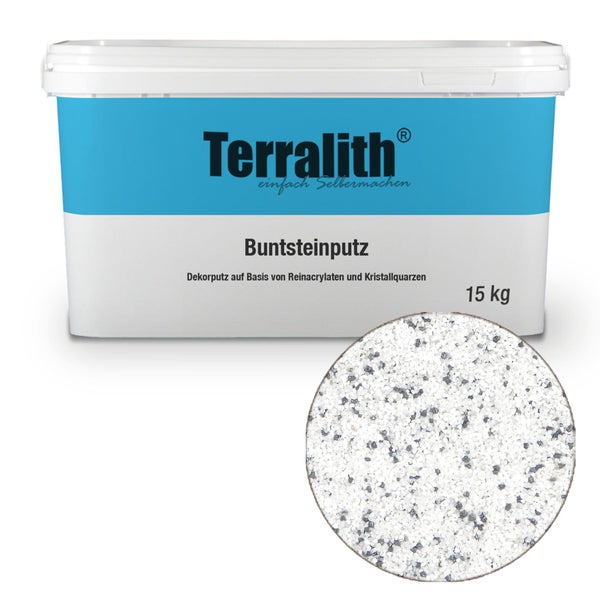 Terralith-Buntsteinputz ist ein verarbeitungsfertiger Dekorationsputz aus Marmor-Granulat bzw./oder eingefärbter Körnung mit einem Reinacrylat als Bindemittel. Terralith-Buntsteinputz ist diffusionsfähig und langlebig. Er ist im Innen- und Außenbereich anwendbar.