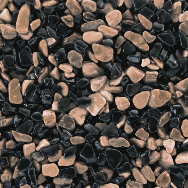 1 m²-Systempakete zur Herstellung von Terralith Steinteppich innen. Es besteht aus entsprechenden Steinen und einem transparenten 2-Komponenten Harz.