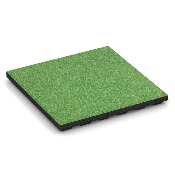 Die Platte ist homogen aufgebaut und besteht aus Gummigranulat mittlerer Körnung, das aus recycelten Altreifen gewonnen wird – sogenanntes ELT-Granulat (End-of-Life Tyres) –, gebunden mit Polyurethan. Bei farbigen Ausführungen umhüllt pigmentiertes Bindemittel die schwarzen Granulatkörner im oberen Teil der Platte und erzeugt so die gewünschte Farbgebung.
