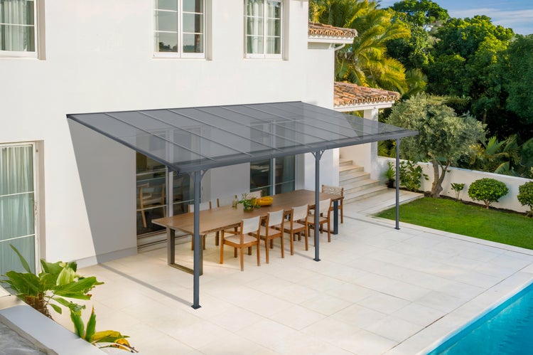 Terrassenüberdachung garten alu Grau KLEO - Höhe verstellbar 556x300x225/270 cm - mit Polycarbonat Dach Grau halbtransparent 6mm Auch Pergola/Carport