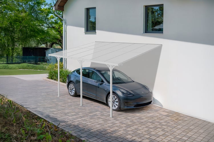 Bekannt für seine Leichtigkeit, seine bemerkenswerte Wasserdichtigkeit und seine hohe Stoß- und Schlagfestigkeit, wird Polycarbonat, das weit weniger zerbrechlich als Glas ist, häufig für Dächer von Pergolen oder Carports verwendet.
