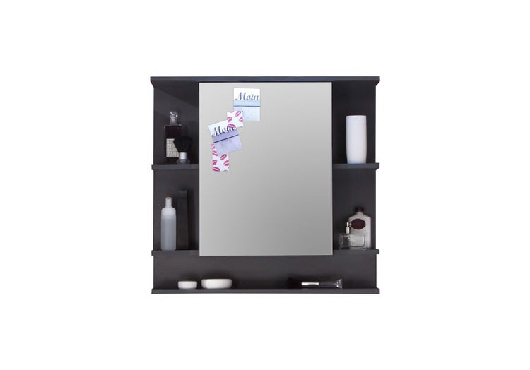 TetisBad Spiegelschrank 1 Tür, 5 offene Fächer Graphit Dekor, Spiegelglas. 72 X 20 X 76 cm