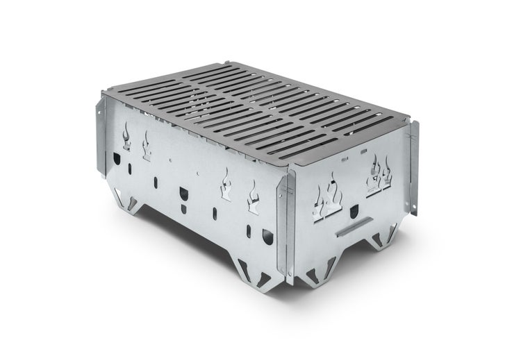 The Favilla Hubo Zerlegbarer Tragbarer Grill – Kompakter Outdoor Campinggrill mit Spießhalterungen & Tragetasche – Feuerstelle für Garten, Picknick, Balkon & Reisen – 6,3 kg