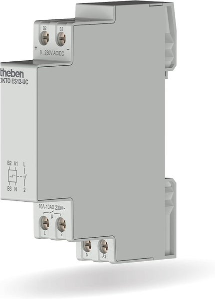 Theben 3120131 OKTO ES12-UC Elektronischer Stromstoßschalter I 1 Schließer I Potenzialfreier Multispannungseingang 8V - 230V I DIN-Schiene I LED BIS 600W
