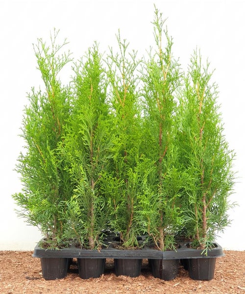 Thuja occidentalis ‘Smaragd’, der Smaragd-Lebensbaum, ist eine elegante, immergrüne Konifere mit leuchtend smaragdgrüner Benadelung und dichtem, schuppenförmigem Laub. Als Nadelgehölz besticht diese Thuja durch ihren schmal kegelförmigen, aufrechten Wuchs und bleibt ganzjährig farbstabil, was sie zu einer idealen Wahl für strukturgebende Pflanzungen macht. Die dezenten Blüten spielen keine Rolle, im Fokus steht die satte, frische Farbe und die feine Textur, die jedem Garten ein gepflegtes, repräsentatives Erscheinungsbild verleiht. In der Verwendung glänzt ‘Smaragd’ als Heckenpflanze für eine dauerhafte, blickdichte Sichtschutzhecke, ebenso als Solitär im Vorgarten oder Eingangsbereich, in Gruppenpflanzung zur rhythmischen Gestaltung von Gartenräumen sowie als Ziergehölz im Beet. Auch im großen Kübel auf Terrasse oder Balkon überzeugt diese Kübelpflanze mit geradliniger Form und guter Schnittverträglichkeit, was Formschnitt und exakte Kanten ermöglicht. Bevorzugt wird ein sonniger bis halbschattiger Standort mit frischem, humosem und gut durchlässigem Gartenboden; Staunässe sollte vermieden, eine gleichmäßige Bodenfeuchte jedoch gesichert werden. Eine düngearme, leicht saure bis neutrale Substratbasis unterstützt die intensive Benadelung, während eine Mulchschicht die Feuchte hält. Der Lebensbaum ist windfest und winterhart, ein regelmäßiger, maßvoller Schnitt fördert die Dichte der Hecke und erhält die klare Silhouette. Als pflegeleichter Gartenstrauch und zuverlässiges Nadelgehölz vereint Thuja ‘Smaragd’ langlebige Struktur, gepflegte Optik und vielseitige Einsatzmöglichkeiten in jedem Garten.