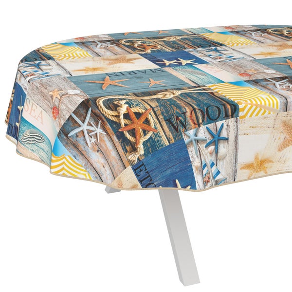 Tischdecke auf See Maritim Blau Oval 200x140cm mit Band-Kante Wachstuch abwaschbar