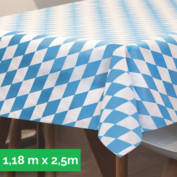 Tischdecke aus stoffähnlichem Vlies, -Tex 100, 1,18 m x 2,50 m Bayerische Raute, Blau/Weiß