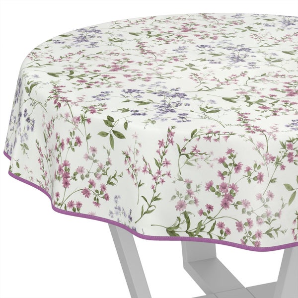 Tischdecke Botanic Blümchen Weiß Bunt Rund 120cm mit Band-Kante Wachstuch abwaschbar