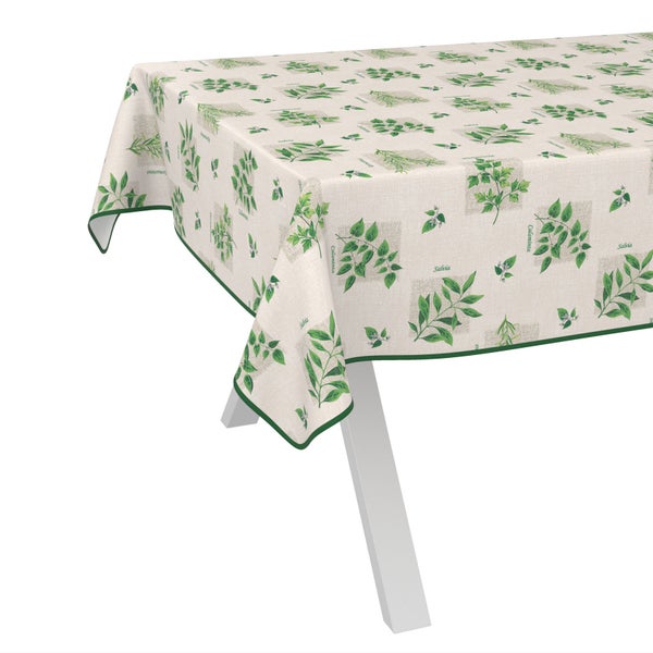 Tischdecke Botanic Kräuter Beige Grün 140x140cm mit Band-Kante Wachstuch abwaschbar