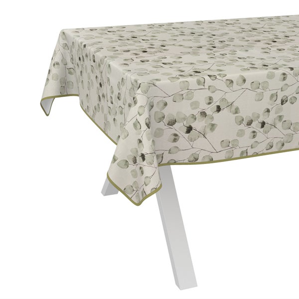 Tischdecke Botanisch Eukalyptus Beigegrau 140x140cm mit Band-Kante Wachstuch abwaschbar