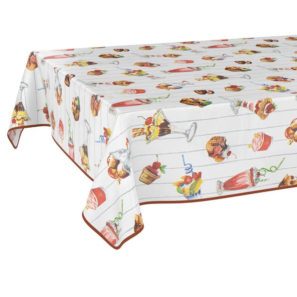 Tischdecke Collage Eiscafe Hellgrau 180x140cm mit Band-Kante Wachstuch abwaschbar