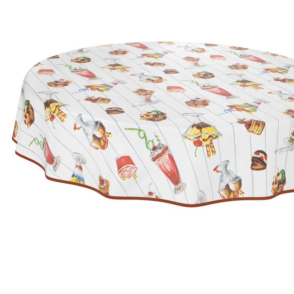 Tischdecke Collage Eiscafe Hellgrau Rund 140cm mit Band-Kante Wachstuch abwaschbar