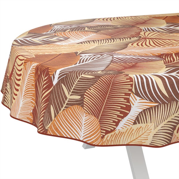 Tischdecke Extraordinär Blätter Gold Oval 200x140cm mit Band-Kante Wachstuch abwaschbar