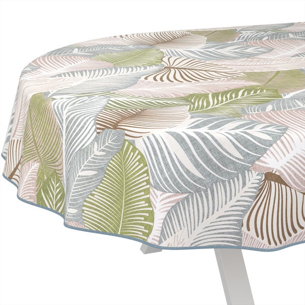 Tischdecke Extraordinär Blätter Grün Oval 200x140cm mit Band-Kante Wachstuch abwaschbar