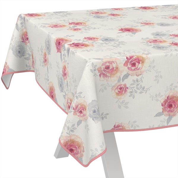 Tischdecke Floral Rosen Beige Rosa 100x140cm mit Band-Kante Wachstuch abwaschbar