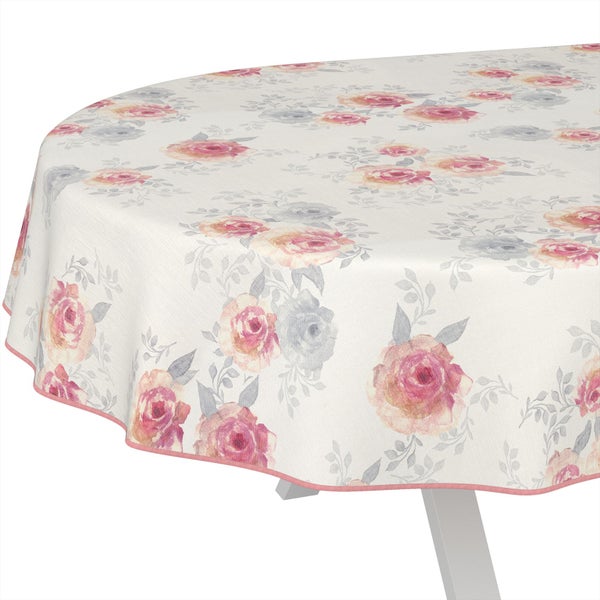 Tischdecke Floral Rosen Beige Rosa Oval 180x140cm mit Band-Kante Wachstuch abwaschbar