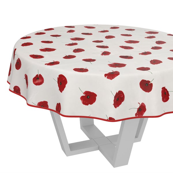 Tischdecke Fotoprint Mohnblumen Beige Rot Rund 120cm mit Band-Kante Wachstuch abwaschbar