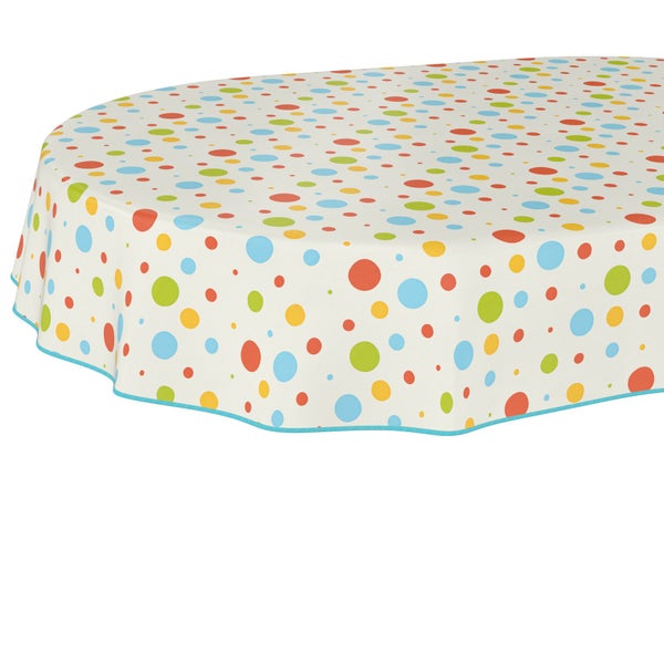 Tischdecke Geometrie - Dots Party Bunt Oval 220x140cm mit Band-Kante Wachstuch abwaschbar
