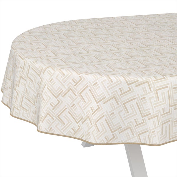 Tischdecke Geometrie Moderna Beige Oval 200x140cm mit Band-Kante Wachstuch abwaschbar