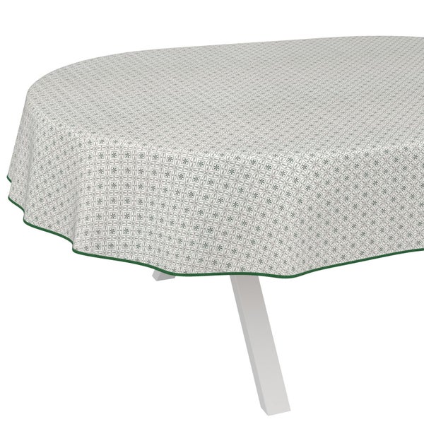 Tischdecke Gepunktet Italien Grau Oval 240x140cm mit Band-Kante Wachstuch abwaschbar