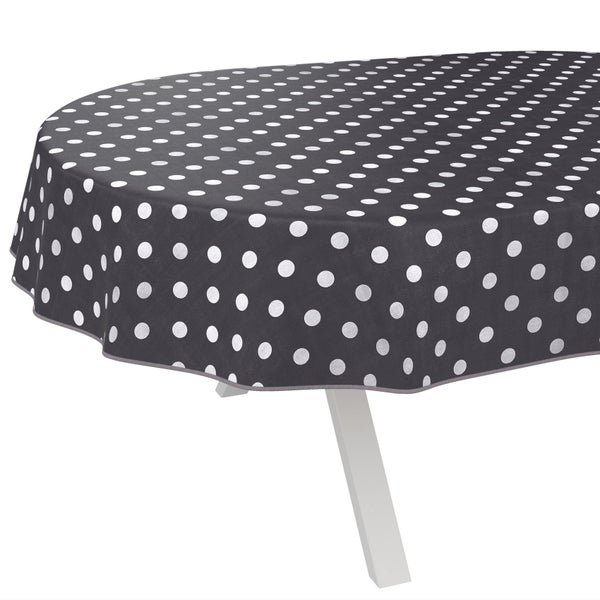 Tischdecke Gepuntet Punkte Grau Oval 200x140cm mit Band-Kante Wachstuch abwaschbar