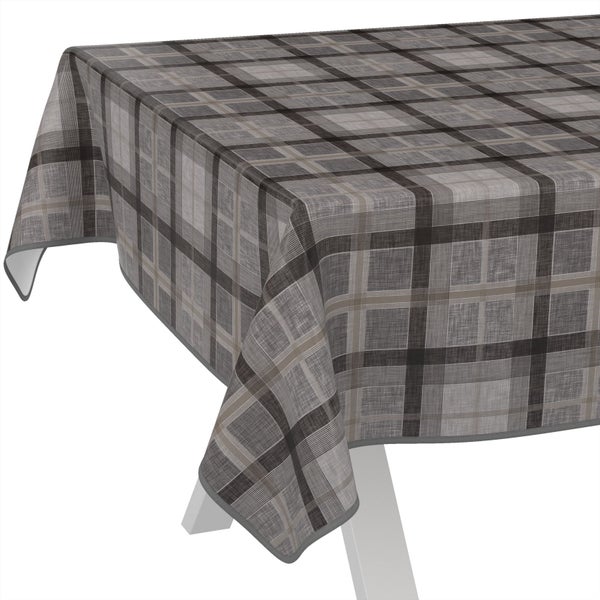 Tischdecke Karo Rustikal Karo Anthrazit 180x140cm mit Band-Kante Wachstuch abwaschbar