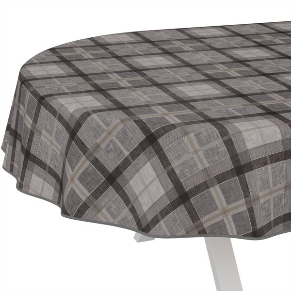 Tischdecke Karo Rustikal Karo Anthrazit Oval 240x140cm mit Band-Kante Wachstuch abwaschbar