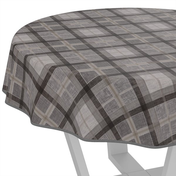 Tischdecke Karo Rustikal Karo Anthrazit Rund 140cm mit Band-Kante Wachstuch abwaschbar