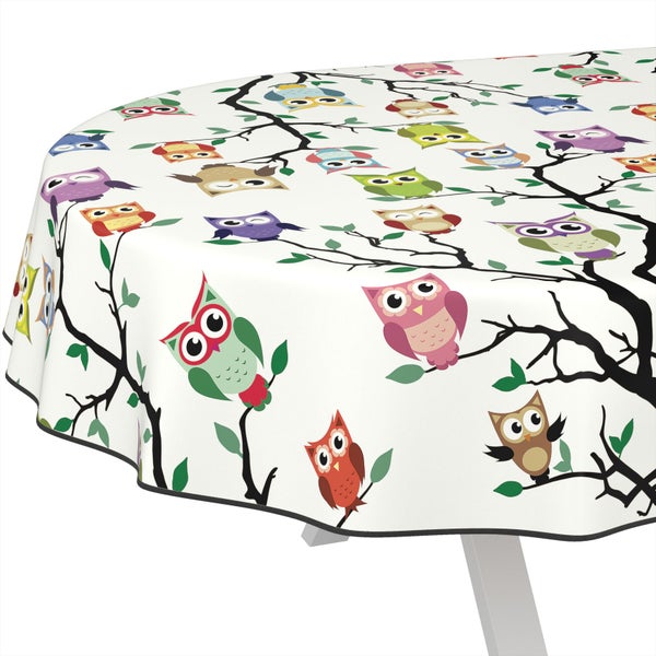 Tischdecke Kinder Eulen Bunt Oval 220x140cm mit Band-Kante Wachstuch abwaschbar