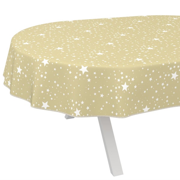 Tischdecke Minimalistisch Sterne Beige Oval 180x140cm mit Band-Kante Wachstuch abwaschbar