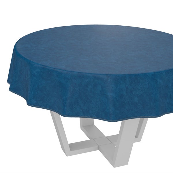 Tischdecke Naturel Marmor Blau Rund 140cm mit Band-Kante Wachstuch abwaschbar