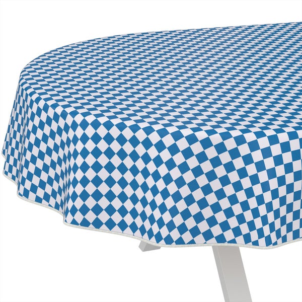 Tischdecke oldscool Karo Blau Oval 240x140cm mit Band-Kante Wachstuch abwaschbar