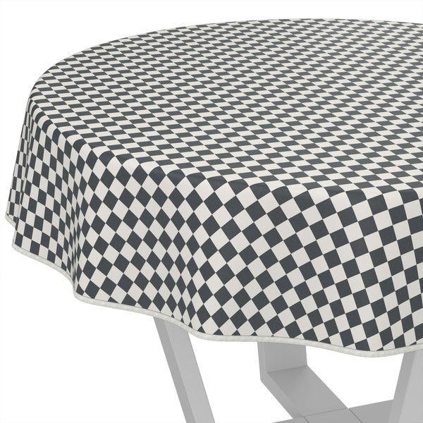 Tischdecke oldscool Karo Grau Rund 140cm mit Band-Kante Wachstuch abwaschbar