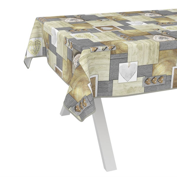 Tischdecke Patchwork Holz Herz Natur 200x140cm mit Band-Kante Wachstuch abwaschbar