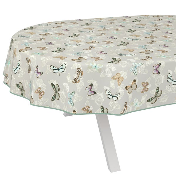 Tischdecke Print Schmetterling Grau Oval 180x140cm mit Band-Kante Wachstuch abwaschbar