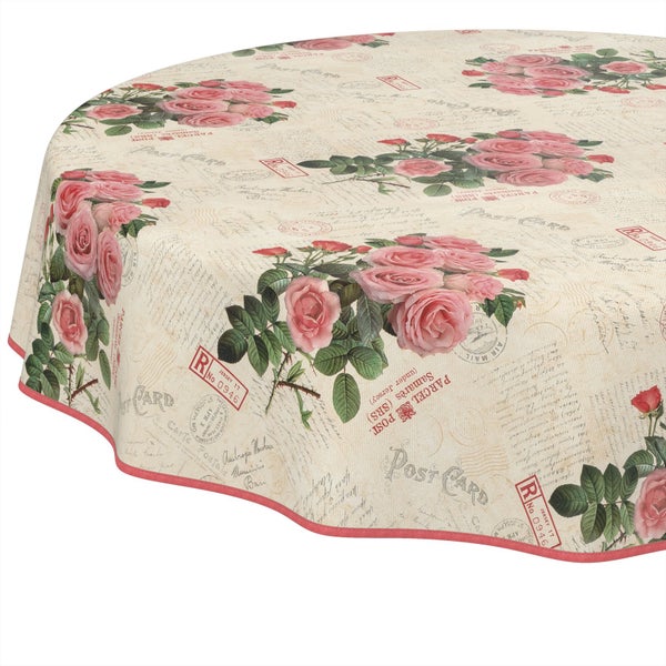 Tischdecke Shabby Chic Postkarte Rosen Beige Rund 120cm mit Band-Kante Wachstuch abwaschbar