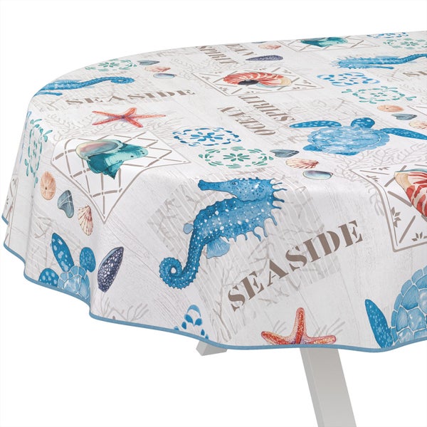 Tischdecke Skandinavisch Ozean Hellgrau Oval 200x140cm mit Band-Kante Wachstuch abwaschbar