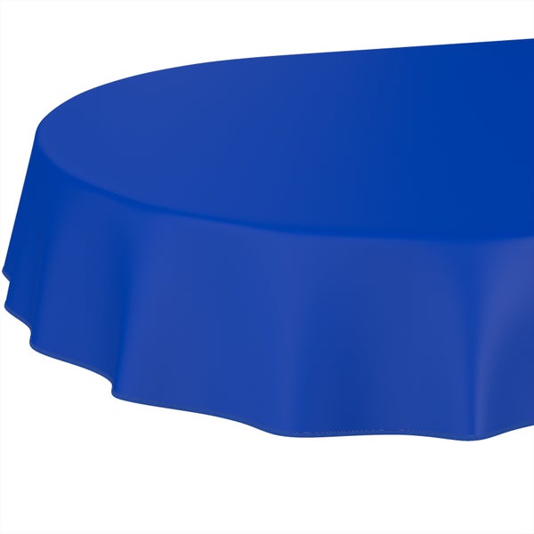 Tischdecke Textil-Optik UNI Blau Oval 200x140cm mit Band-Kante Wachstuch abwaschbar