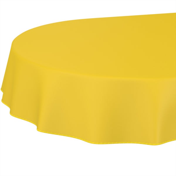 Tischdecke Textil-Optik UNI Gelb Oval 180x140cm mit Band-Kante Wachstuch abwaschbar