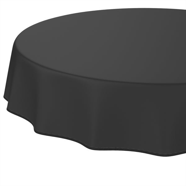 Tischdecke Textil-Optik UNI Schwarz Rund 140cm mit Band-Kante Wachstuch abwaschbar
