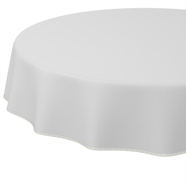 Tischdecke Textil-Optik UNI Weiß Rund 140cm mit Band-Kante Wachstuch abwaschbar